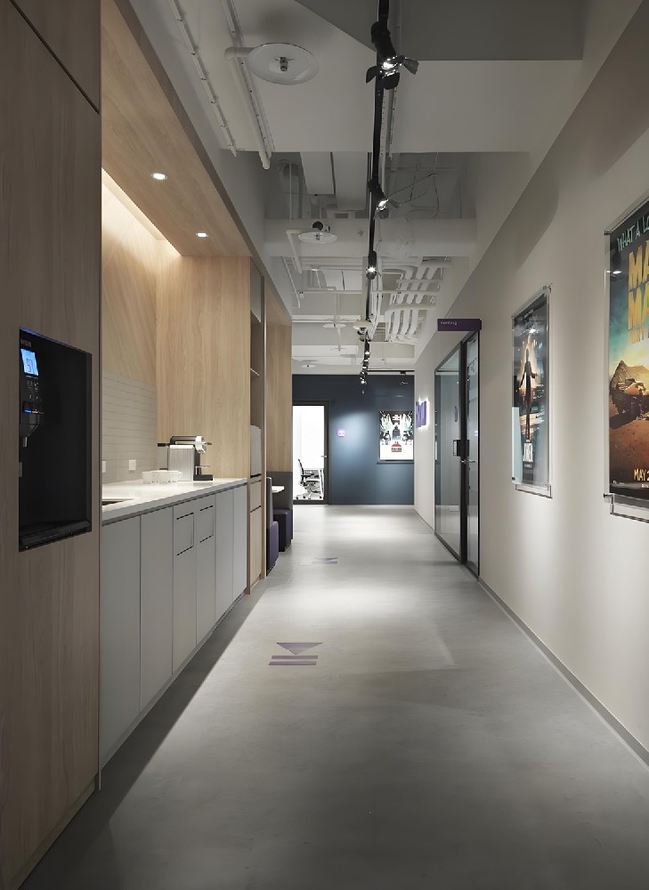觀為監(jiān)測辦公室設(shè)計通過簡約的線條和色彩搭配,運(yùn)用抽象圖案和鮮艷色彩,以紫色和白...... 項目面積:1100㎡ 施工工期:45天