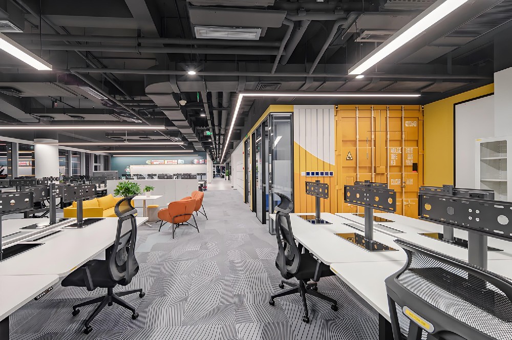 立華科技辦公室設(shè)計結(jié)合了現(xiàn)代設(shè)計的簡潔與部分藝術(shù)元素。灰色基調(diào),黑色與黃色點(diǎn)綴...... 項目面積:1400㎡ 施工工期:52天