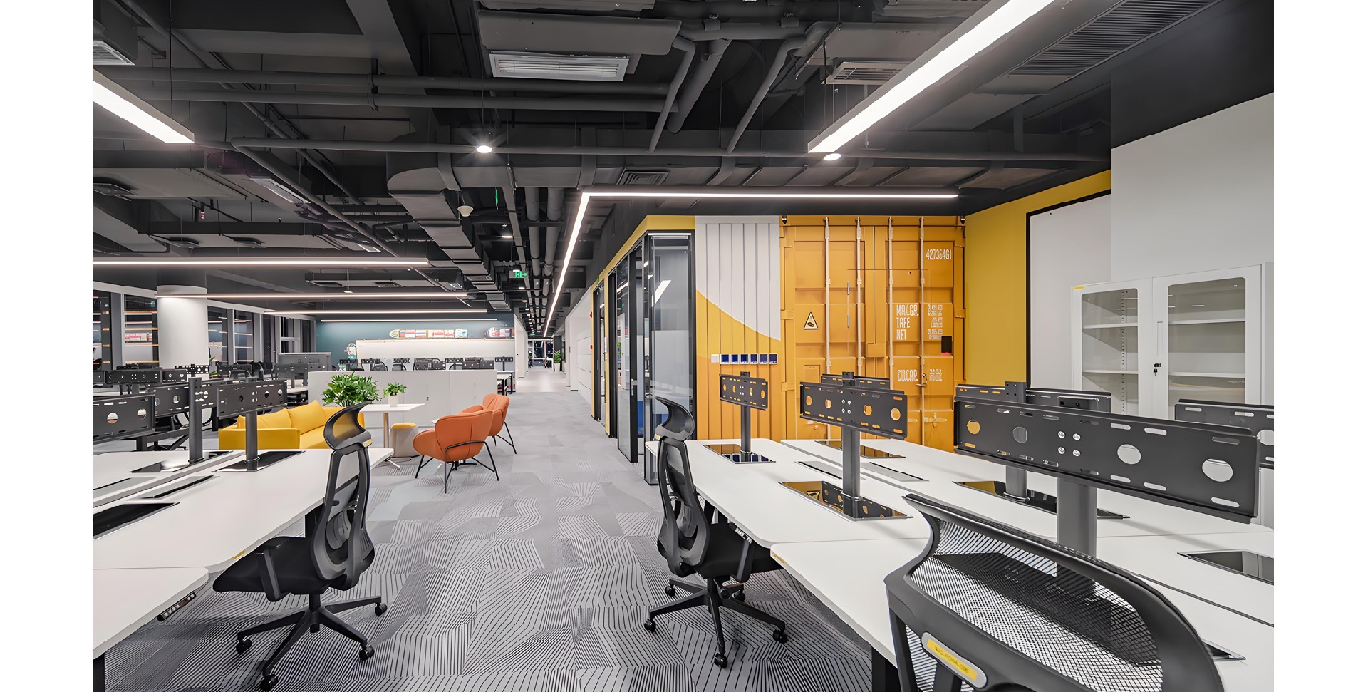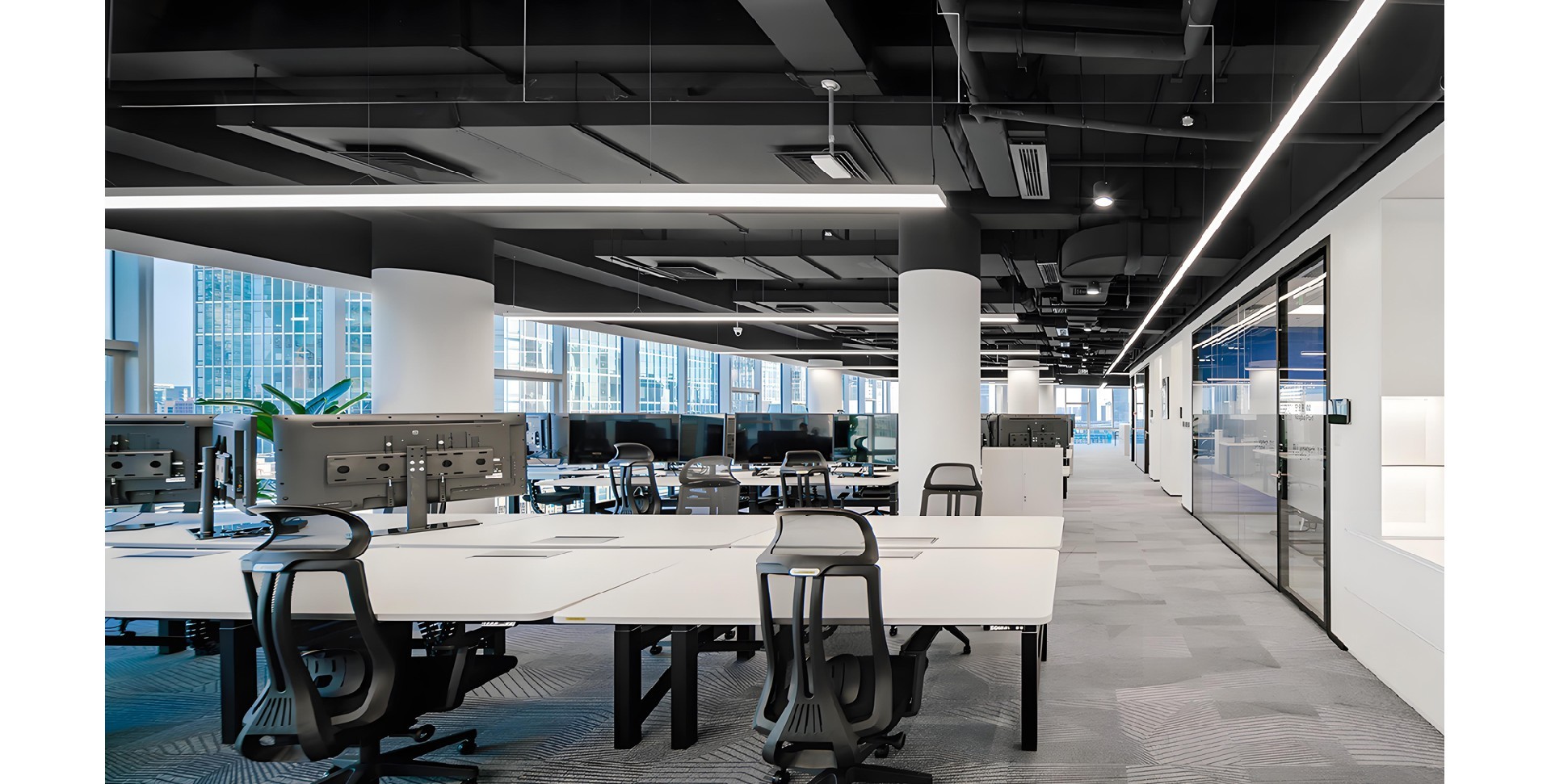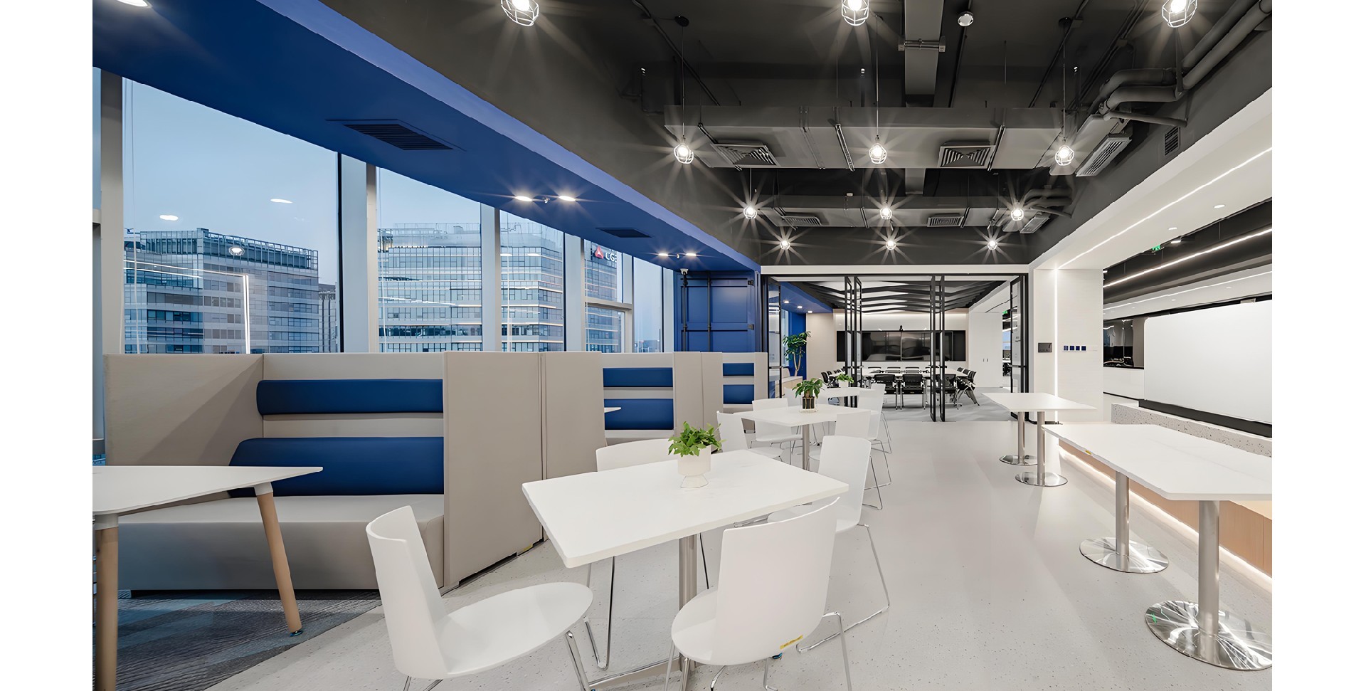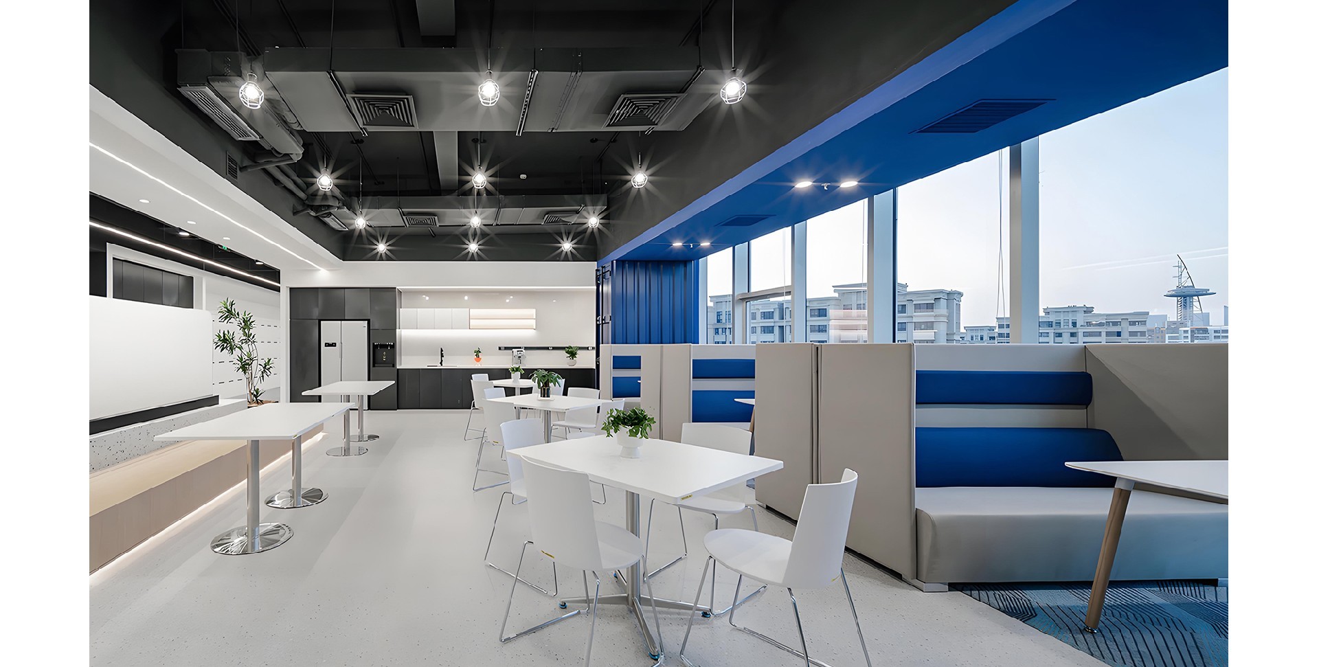 設計體現簡潔和專業,強調功能性與美觀性的結合。強調商務辦公的專業性和高效性,工作與休息的平衡,注重空間的利用率和員工的舒適度,通過簡潔的線條和色彩搭配,營造出專注、高效的辦公環境。
