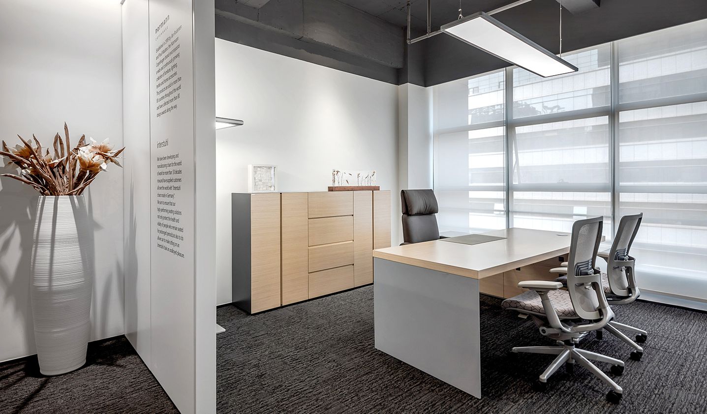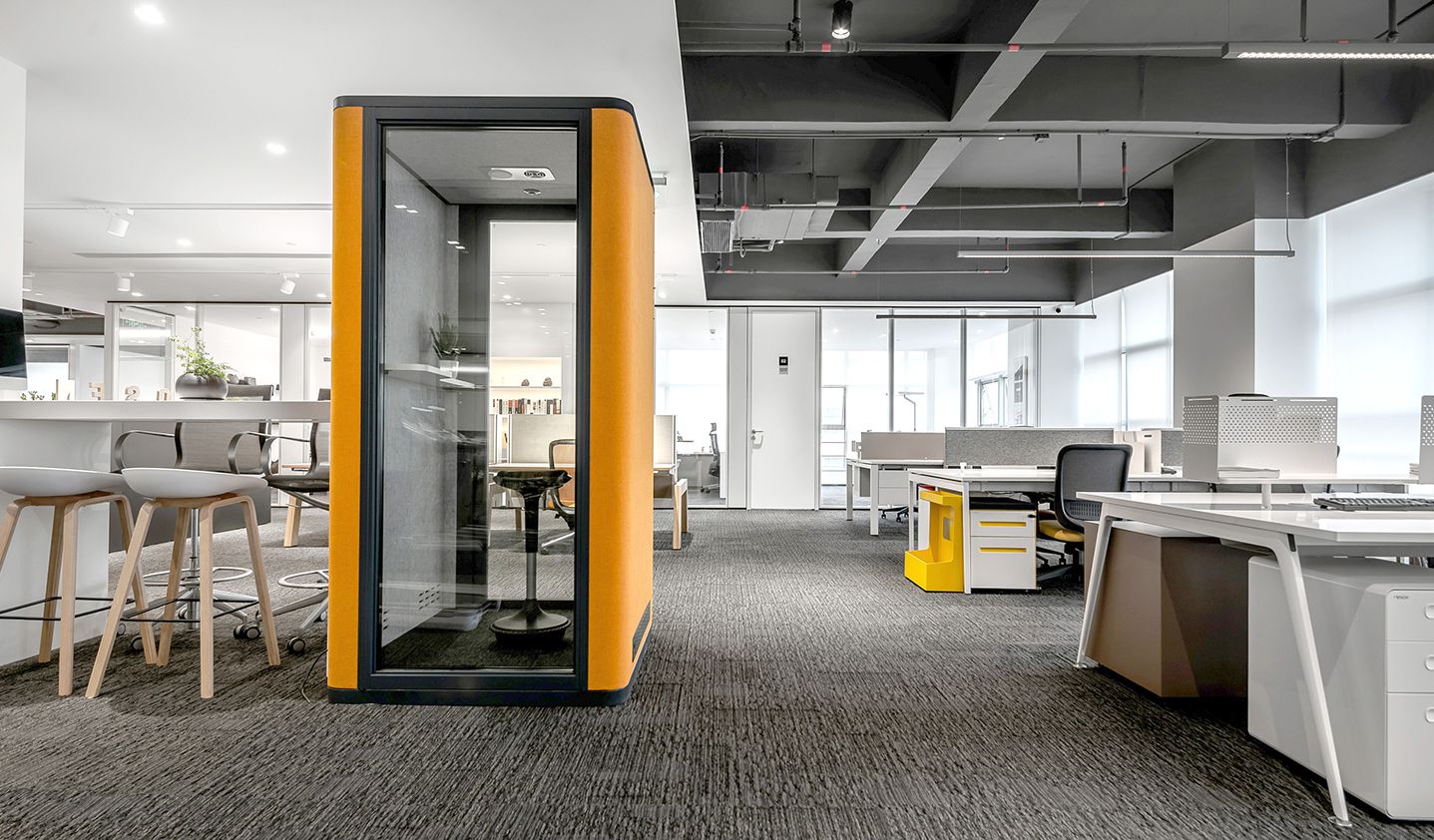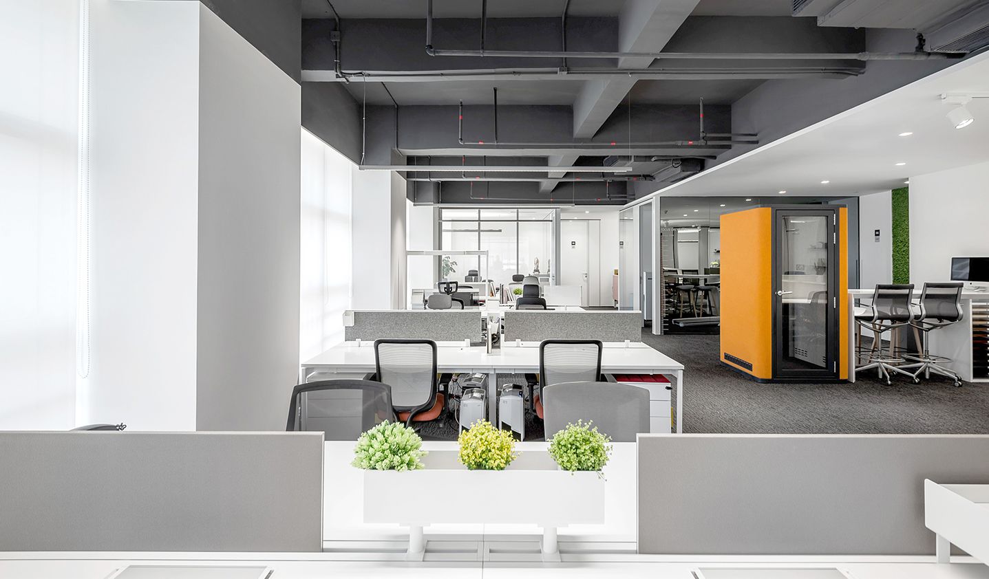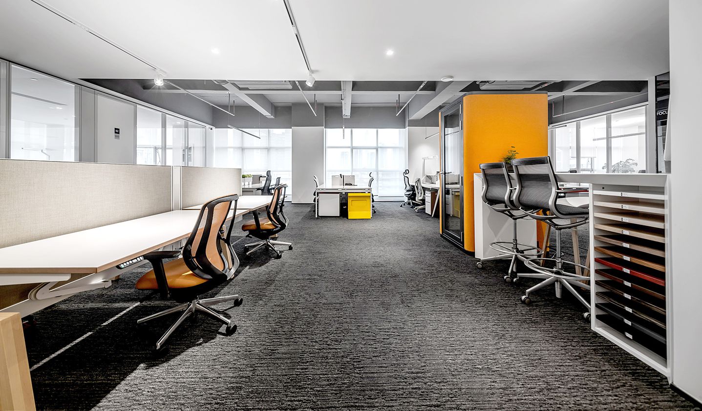 用色彩的語言來來表達空間的情感,鮮艷明亮的橘色打造視覺盛宴,激發對工作的熱情同時表達了設計師對單一空間的色彩點綴的點睛之筆......